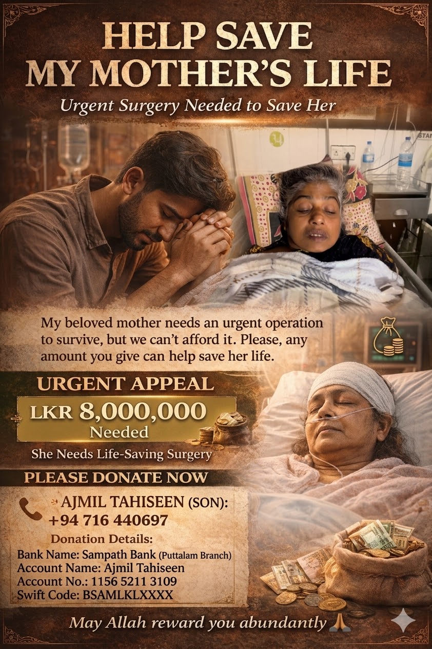 Help Save a Mother’s Life – Urgent Surgery Needed (LKR 8,000,000)”