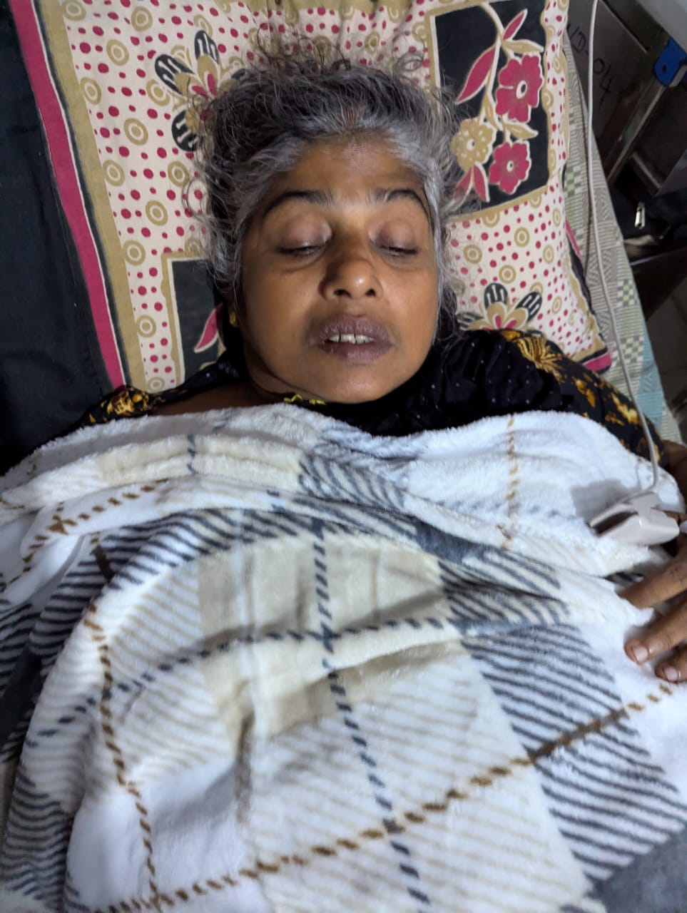 My mother, Siththy Mihiribanu, is 55 years old. She is currently admitted to the hospital and suffering from a serious medical condition. She has severe complications in her hip area, and after several medical tests, doctors have informed us that there is also a serious nerve problem in her head.